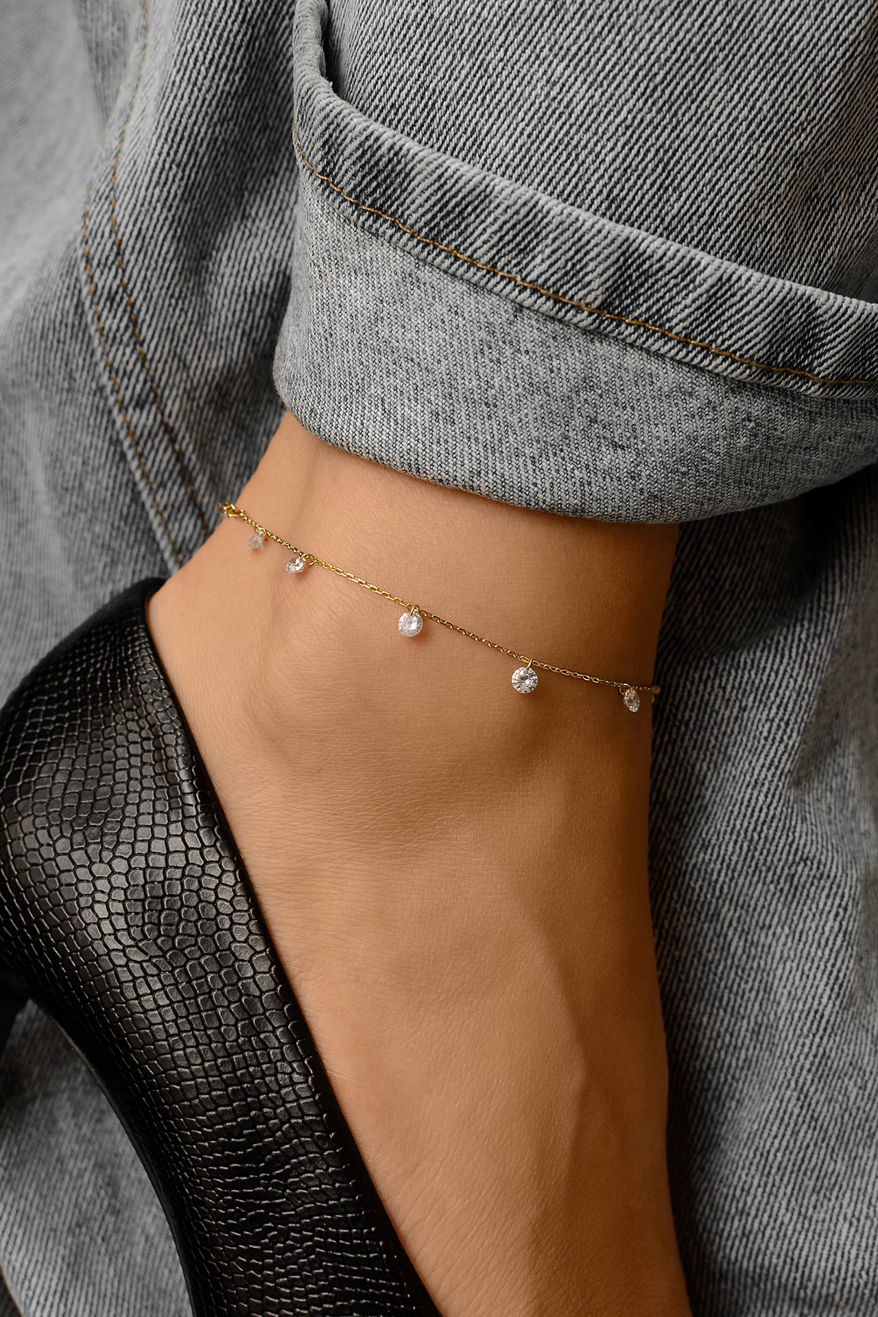 Браслет удобно застёгивается и имеет возможность регулировки по длине, что обеспечивает идеальную посадку на лодыжке и комфорт в носке. Он станет великолепным дополнением как к летним нарядам, так и к вечерним образам, подчеркивая ваши изящество и стиль.
