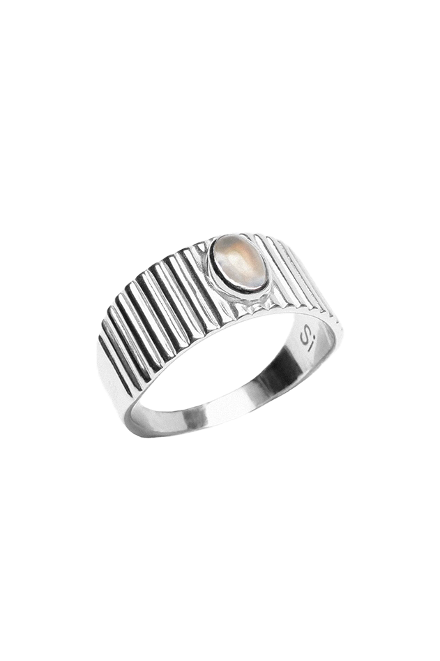 Кольцо из серебра 925 пробы. Покрытие: родирование. Вставка: лунный камень. В данной модели кольца представлена стильная огранка - Кабошон. Это способ обработки, при которой камень приобретает гладкую выпуклую поверхность с одной стороны и плоскую с другой. Размер камня 6х4 мм. Шинка кольца выполнена с сужением во внутренней части кольца от 9 до 3 мм, для максимального удобства в носке.
